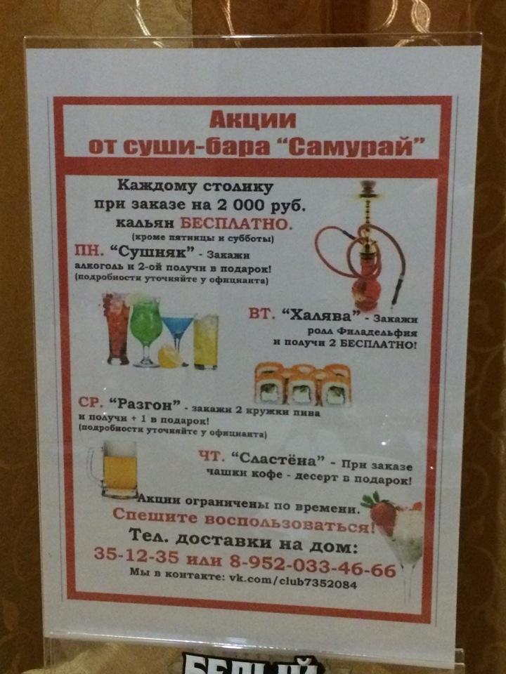 🍣 Адрес, телефон, часы работы и 7 отзывов посетителей о «Суши-бар SAMURAI».